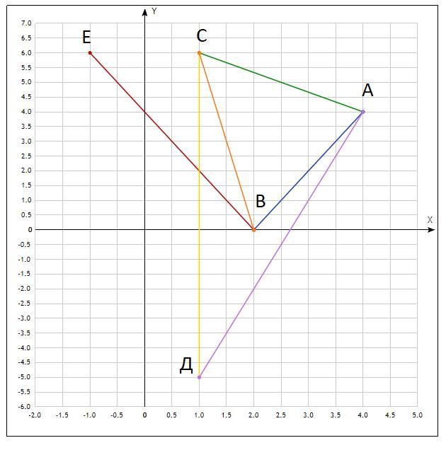 ДАЮ 35 БАЛОВ! На координатной плоскости отметьте точки А(4;4), В(2;0), С(1; 6), Д(1;-5), Е (-1;6)