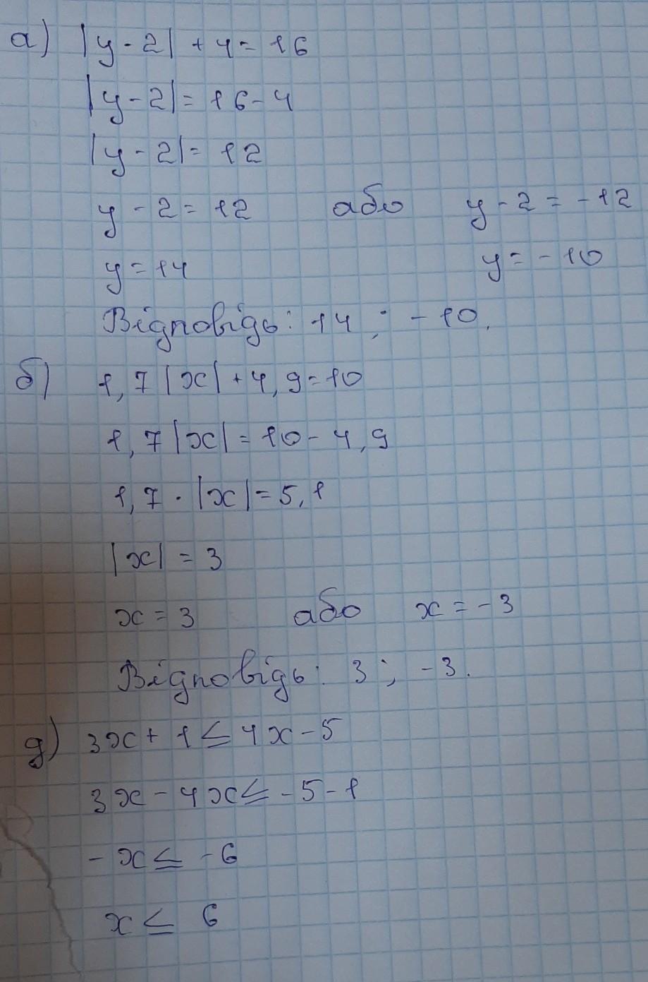 пж помогите, даю 25 баллов. а) |у-2|+4=16. б) 1,7|х|+4,9=10.