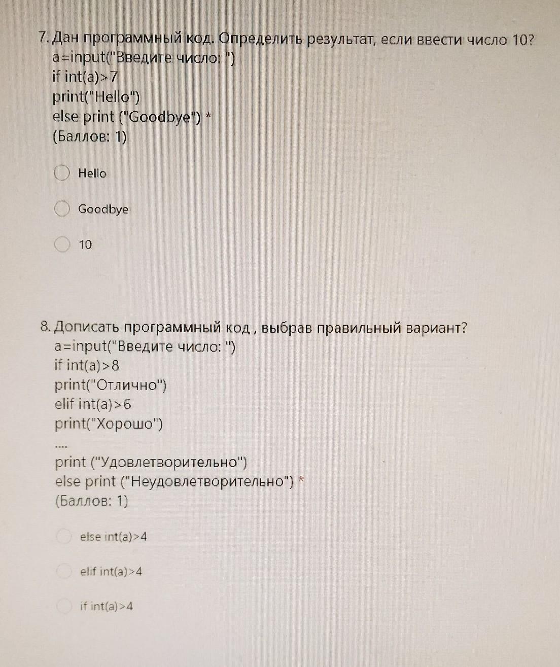 8) elif int(a)>4:
