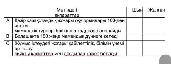 тыңдалым мәтіні мазмұны бойынша 1 (шын) ақпаратты белгілеңіз.