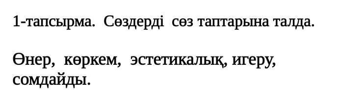 Өнер : зат есім , көркем : сын есім , эстетикалық : сын есім , игеру : зат есім , сомдайды : етістік ( вроде бы правильно )