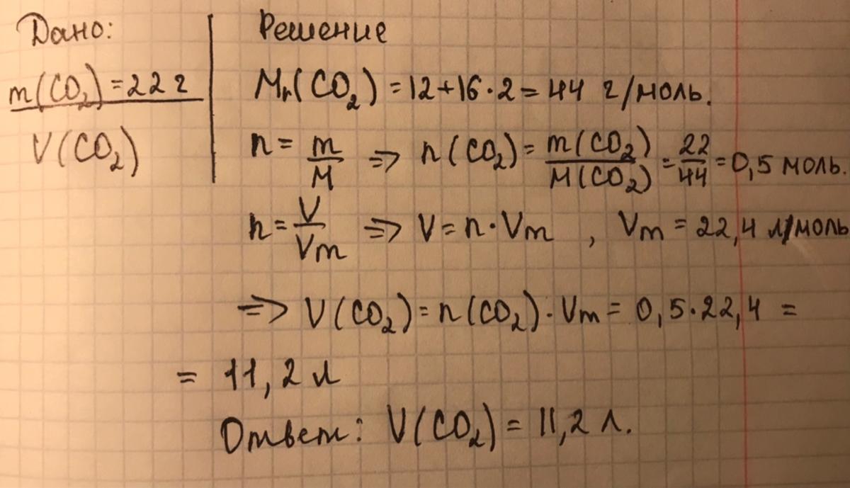 2.v(CO2)=0,5моль*22,4/моль=11,2 моль