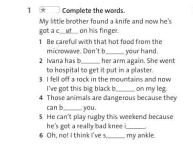 1-burn 2-broke 3- 4-bite 5-illness 6-swelled