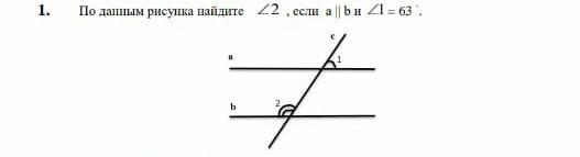 Смежный с 2 равен углу 1 и равен 63 градусов , так как соответственные