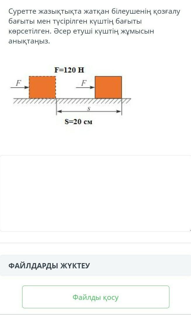 На рисунке показано направление движения ремня в плоскости и направление приложенной силы. Определите работу воздействующей силы.