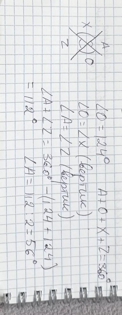 следовательно что бы найти сумму двух других углов мы из 360° вычитаем два известных. а теперь что бы получить их по отдельности просто делим на два получившееся число
