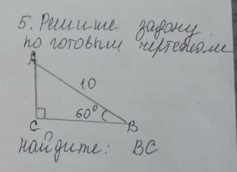 угол напротив 30 градусов равна половине гипотенузе значит сторона ВС=10:2=5