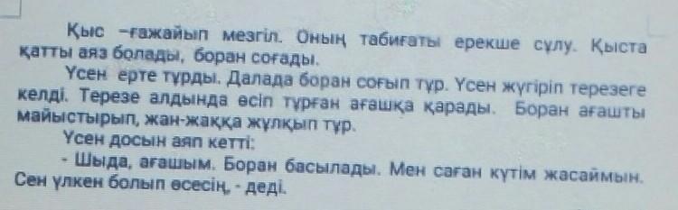 2) мәтіннің негізгі ойы—Қысты бейнелеу