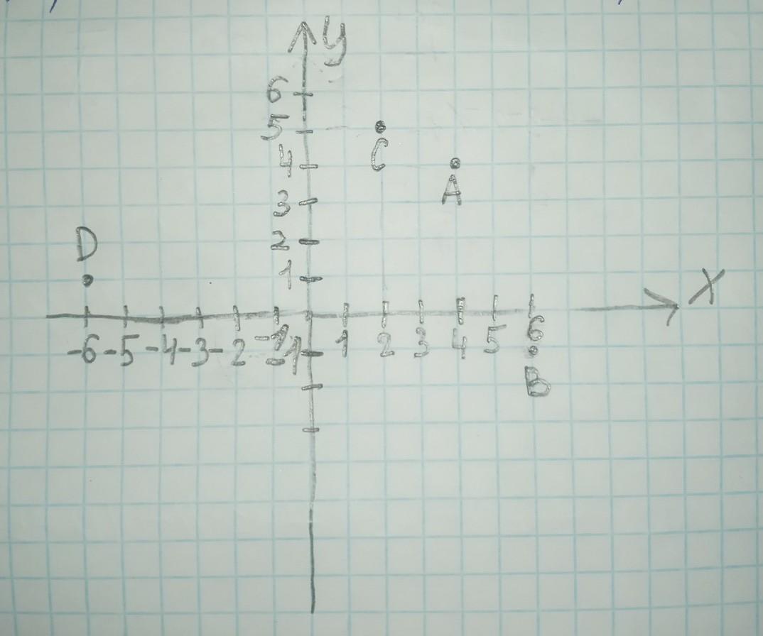 В координатной плоскости отметьте точки А(4;4),В(6;-1),С(2;5 и D(-6;1)