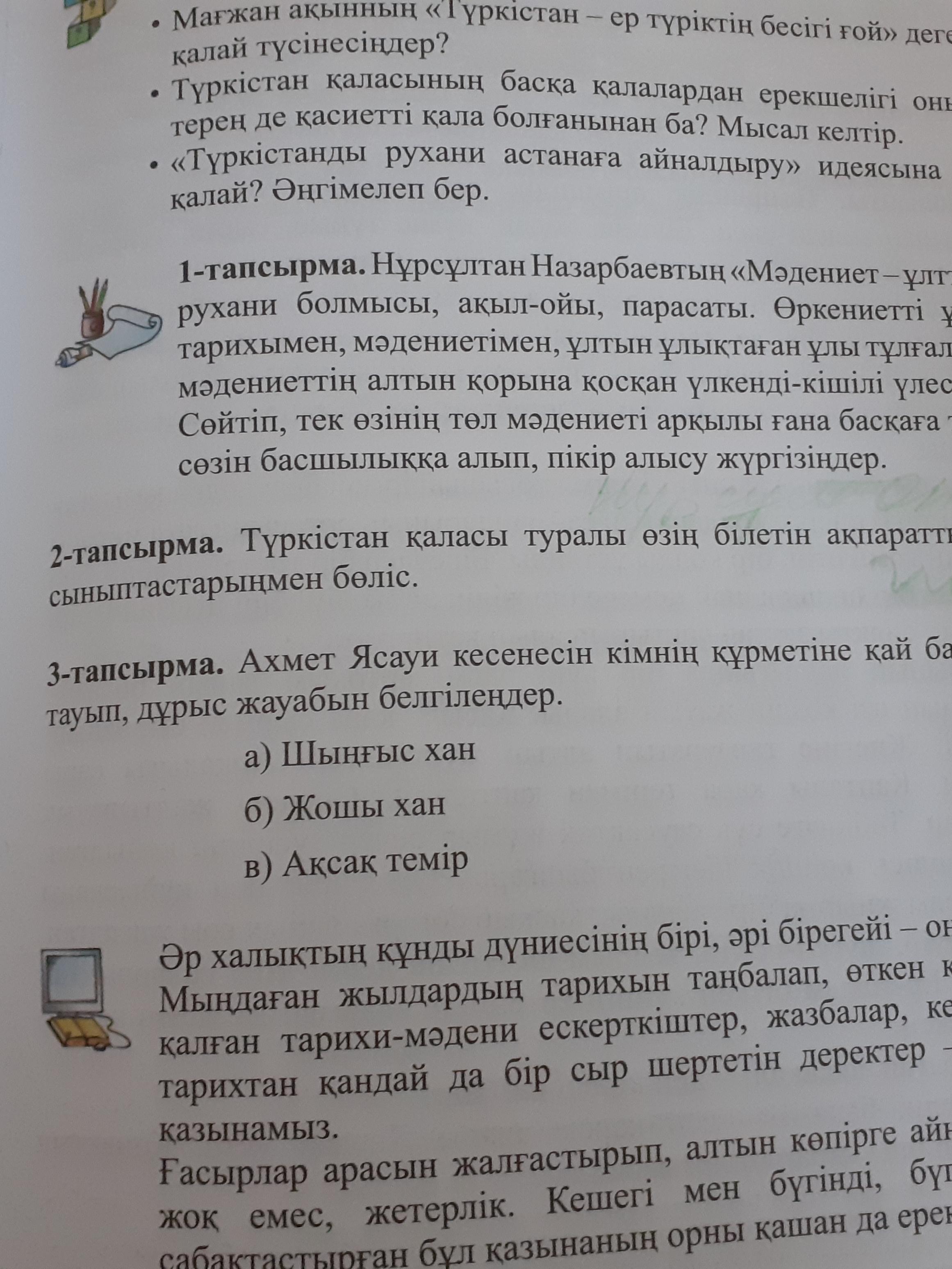 Түркістан Қазақстанның керемет шахарларының бірі.Түркістанда Әлемге әйгілі Ахмет Яссауи кесенесі бар ол жерге күніне көптеген туристтер келеді.