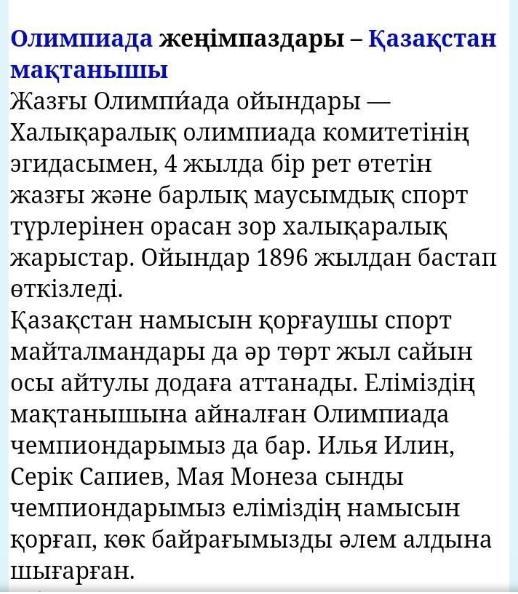 «Олимпиада чемпионы» деген тақырыпқа ақпарат жазып келуді тапсырған. Сіз
