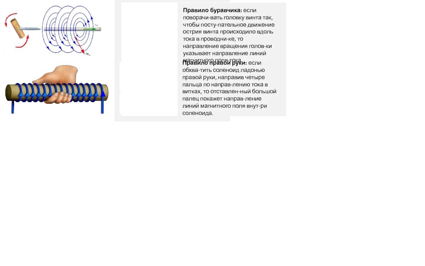 Напавление магнитных линий можно определить по правилу буравчика и по правилу правой руки