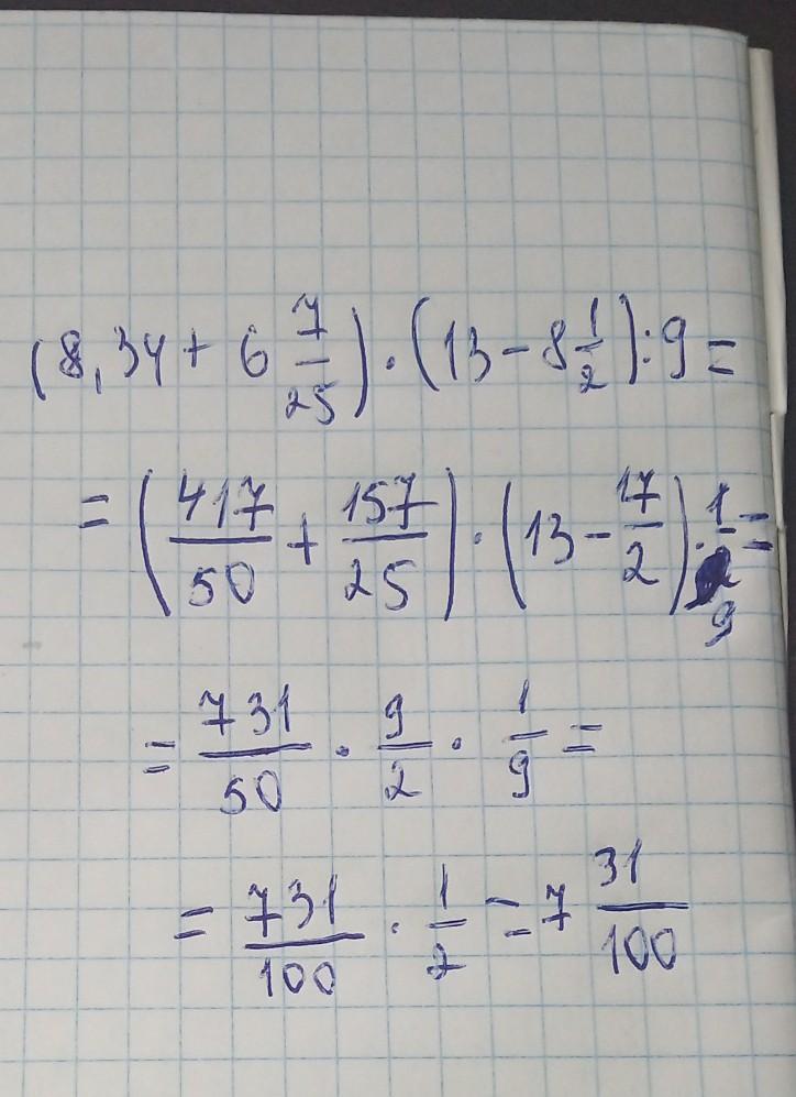 Если ответ нужно записать десятисной дробью то : 7,31