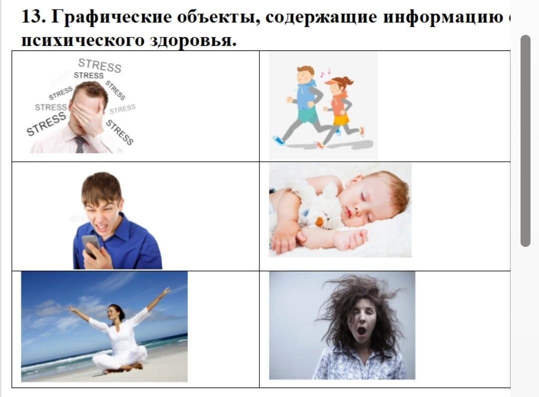 А) Графические объекты, содержащие информацию о принципах сохранения хорошего психического здоровья.
