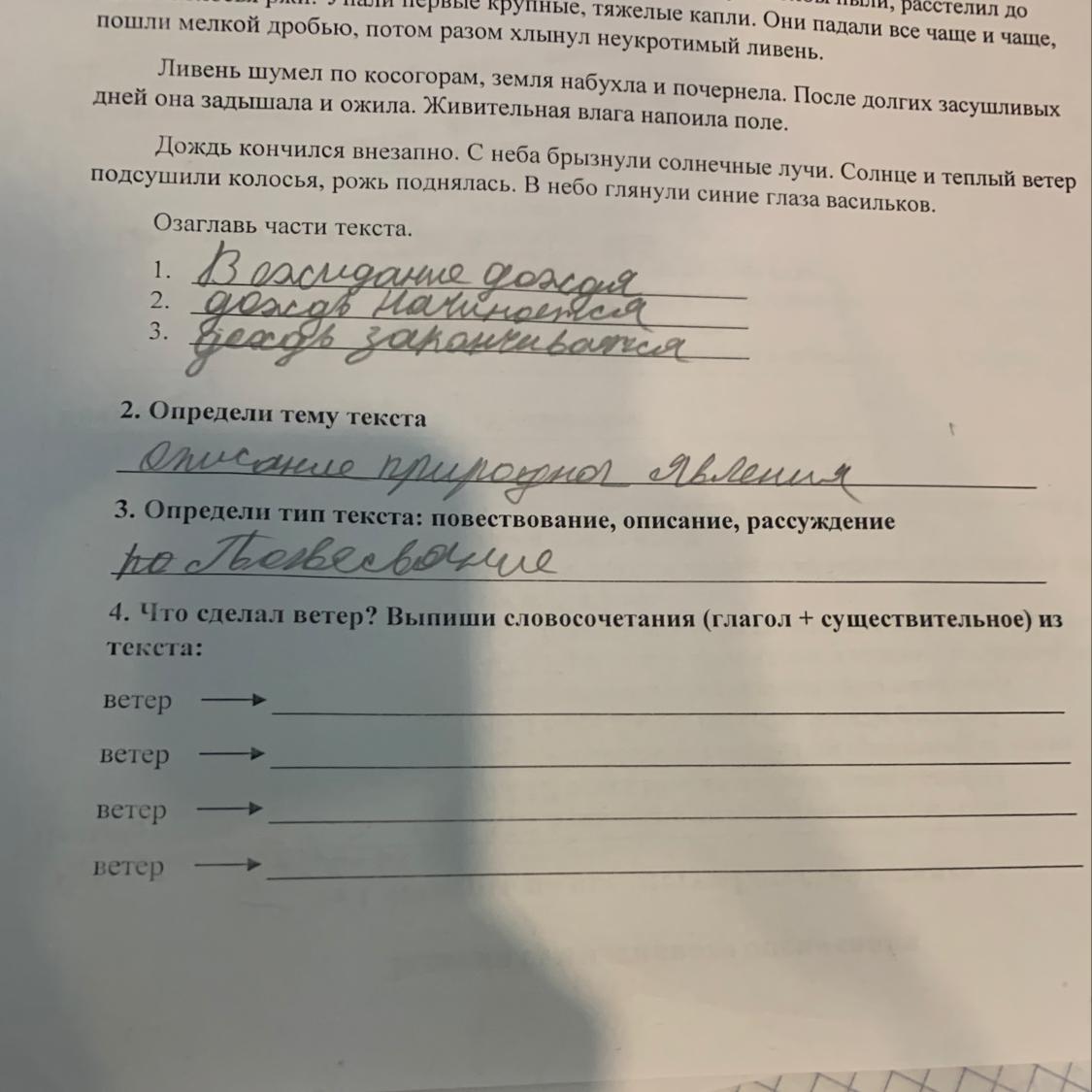 4. Что сделал ветер? Выши словосочетания (глагол + существі