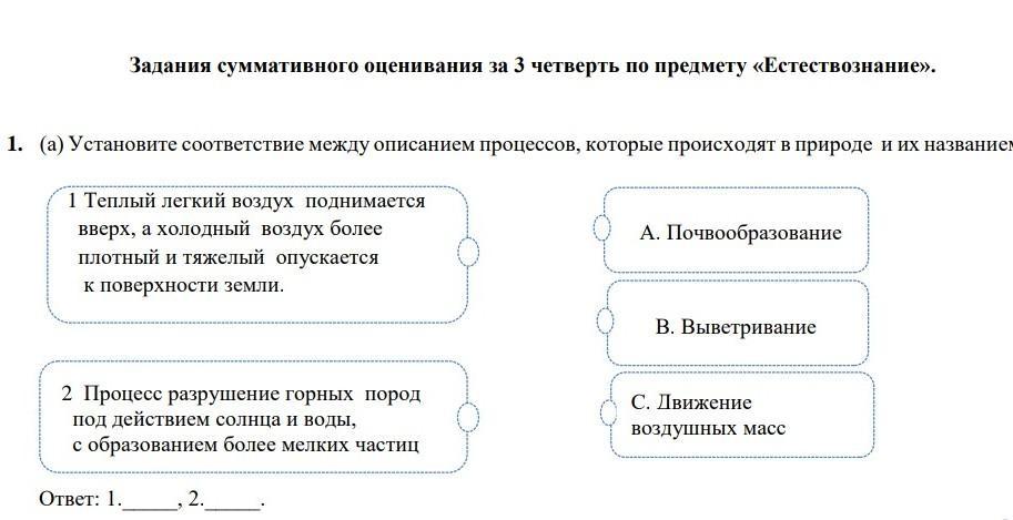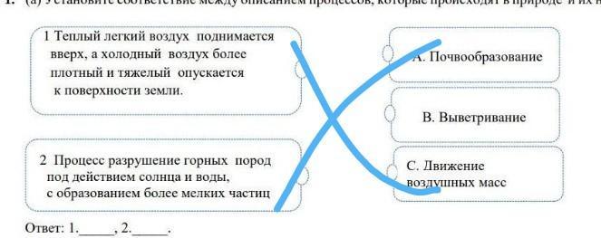 Установите соответствие между описанием процессов, которые происходят в природе и их названием.
