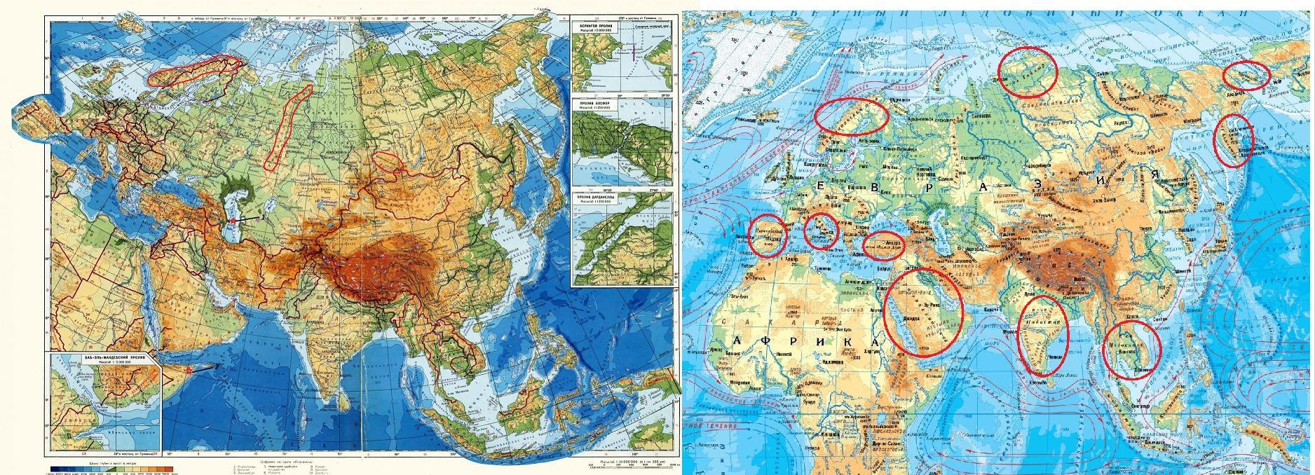 8. Какие формы рельефа образовались на южных границах Евразийской литосферной плиты?