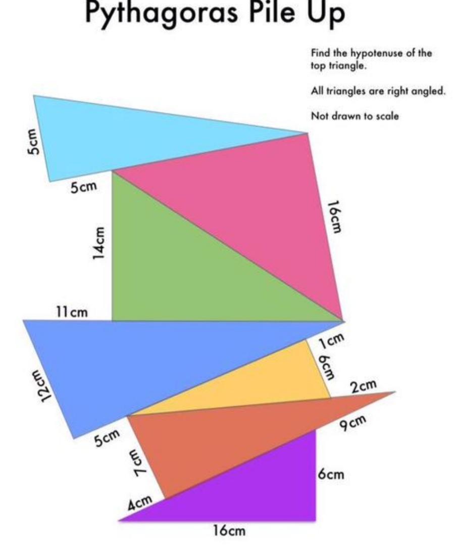 Вывод: самая верхняя гипотенуза равна 21,71 сантиметров.