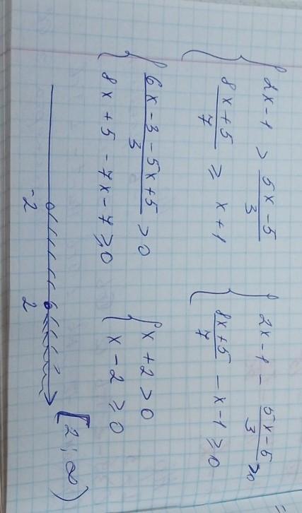 6x - 3 > 5x - 5 ; 6x - 5x > -5 + 3 ; x > -2 ;