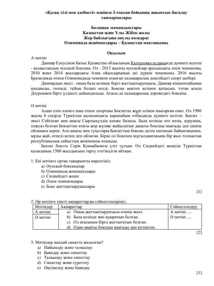 2)а мәтіні-а, с