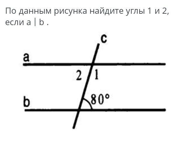 <2 и с градусной мерой 80° равны так как являются углами внутренними накрест лежащими.