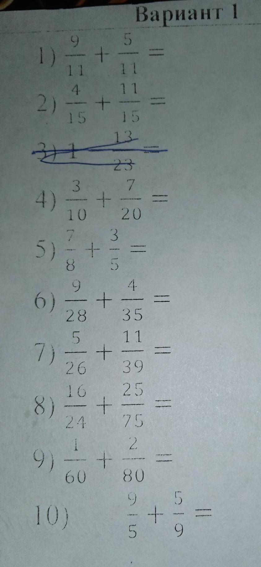 7) 5/26 + 11/39 = 15/78 + 22/78 = 37/78