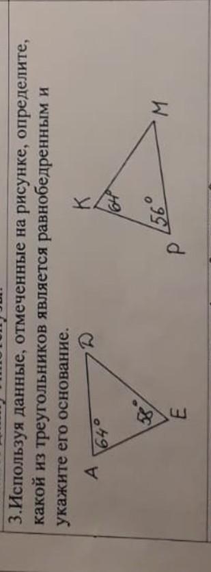 используя данные отмеченные на рисунке определите, какой из треугольников является равнобедренным и укажите его основания