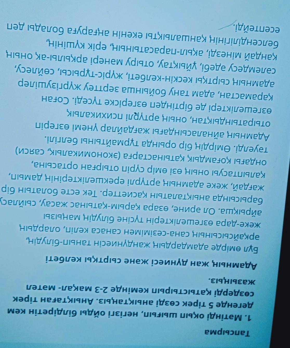 1. Мәтінді оқып шығып, негізгі ойды білдіретін кем