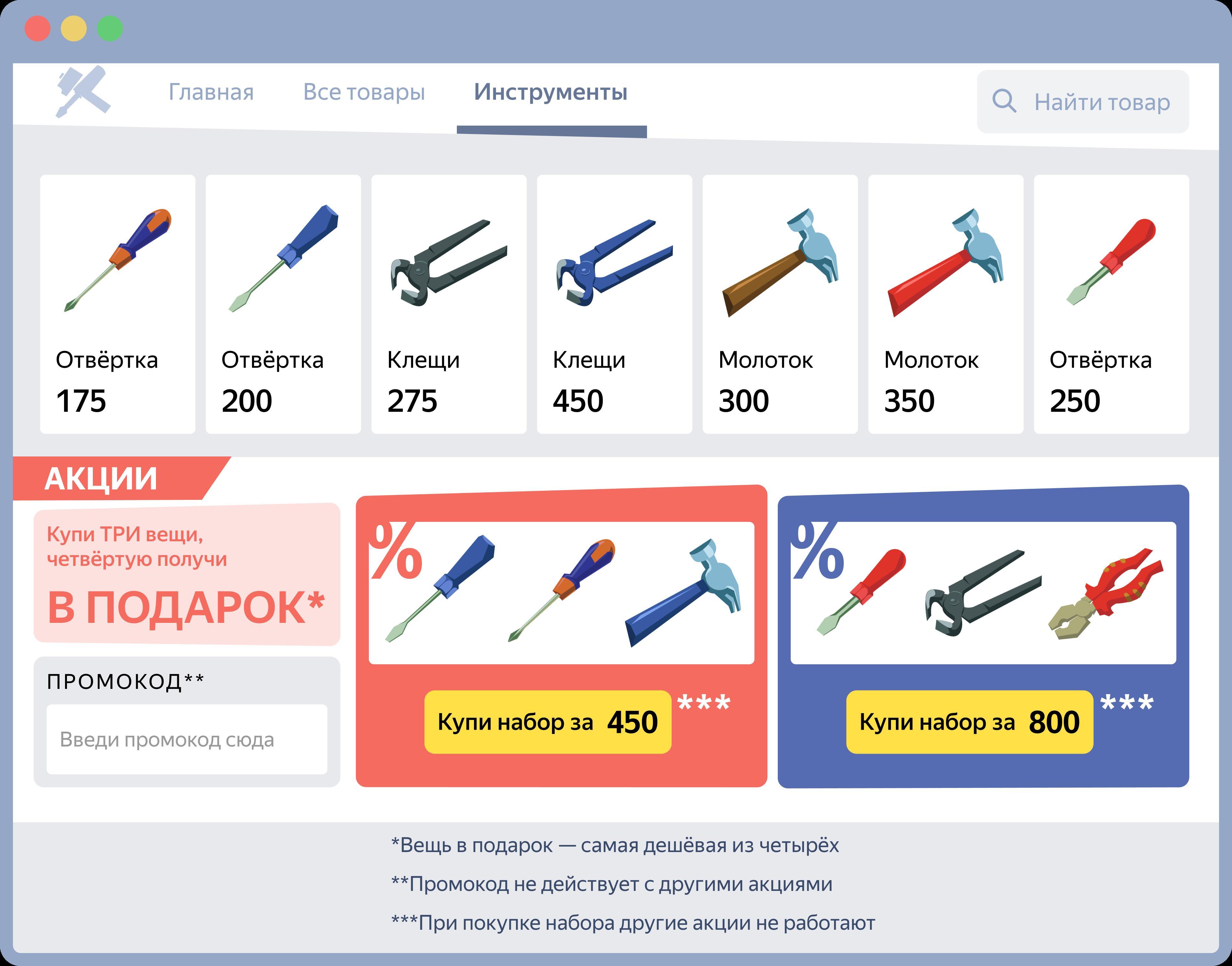СРОЧНО!!!!!!!!!!!!!!!!!!!!!!!!!!!!!!!!!!!!!!!!!!!!!ДимДимыч решил научиться ремонтировать любые приборы не хуже фиксиков, и выбирает себе инструменты в интернет-магазине: две разные отвёртки, клещи и молоток.