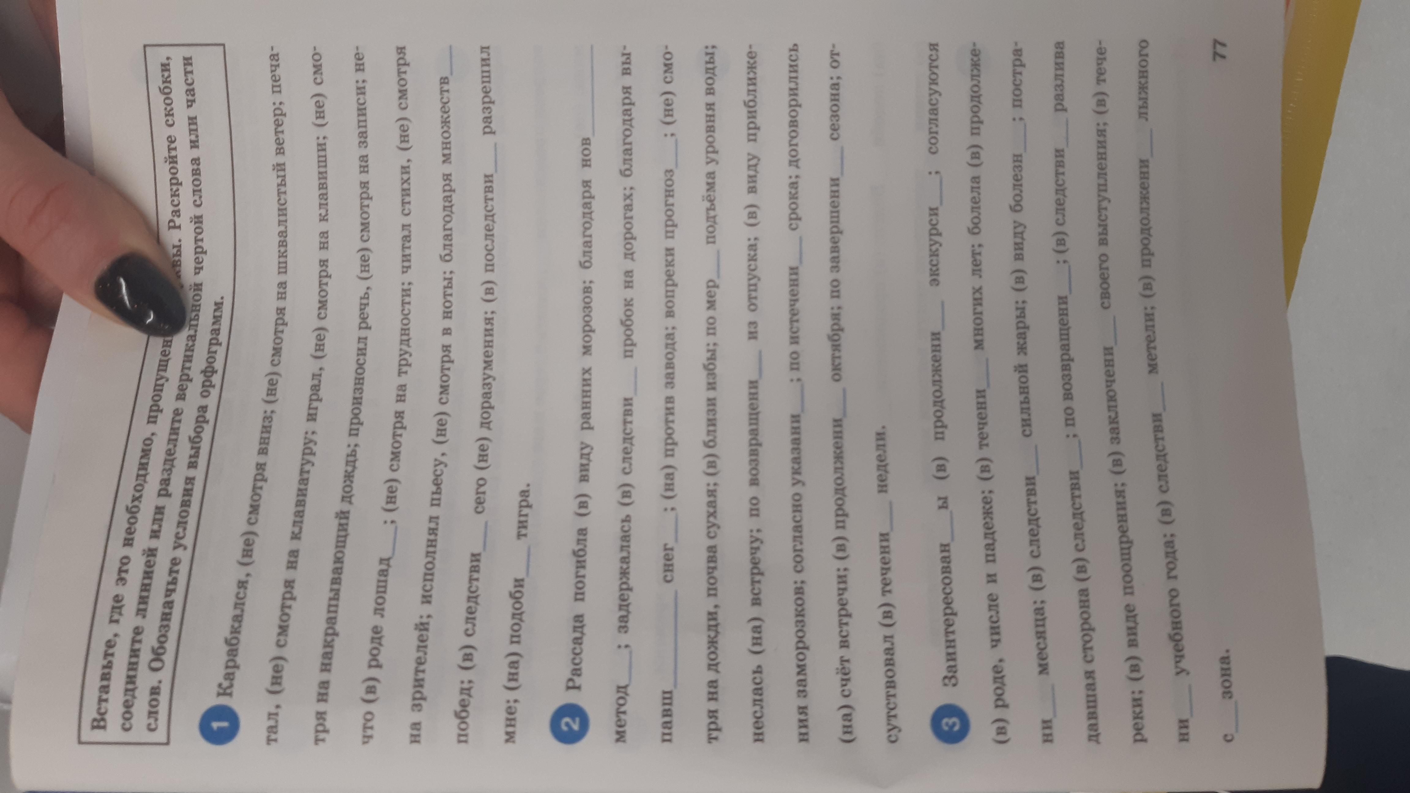 Карабкался, не смотря вниз; играл, не смотря на клавиши; несмотря на накрапывающий дождь; произносил речь, не смотря на записки; нечто, вроде лошади; несмотря на трудности; читал стихи не смотря на зрителей; исполнял пьесу не смотря в ноты; благодаря множеству побед; вследствие сего недоразумения; впоследствии разрешил мне; наподобие тигра.