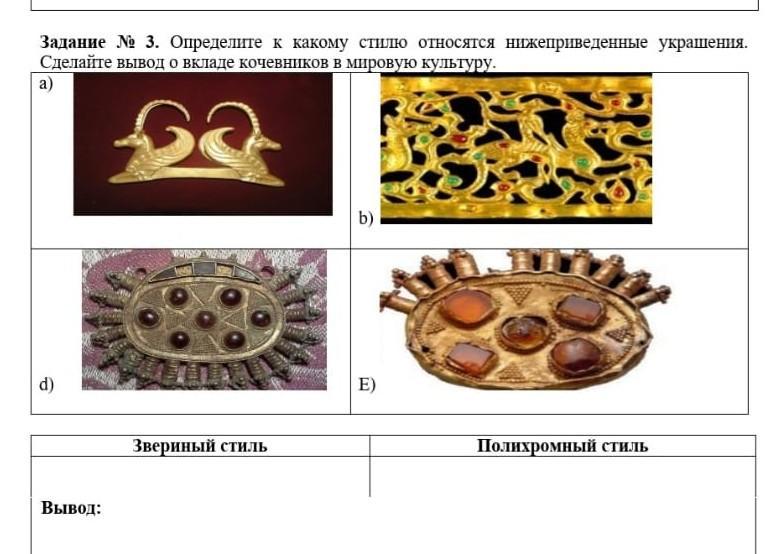 Задание № 3. Определите к какому стилю относятся нижеприведенные украшения.