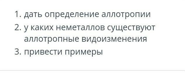За исключением галогенов, благородных газов и полуметаллов, все неметаллы имеют аллотропные видоизменения. Например, Водород: Молекулярный водород может существовать в виде орто- и пара- водорода. Углерод: Множество модификаций: алмаз, графит, фуллерен, карбин, графен, и др.