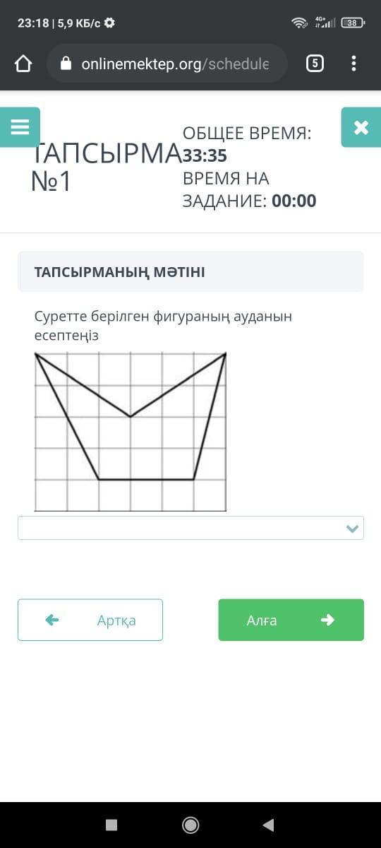 Рассмотрим △234, его основание от 2 до 4 вершини = 6 клеток, а висота =2клеткт → S△=1/2×6×2=6