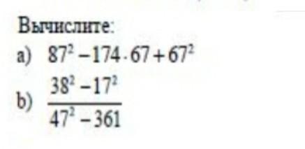 а) 87^2-174*67+67^2=(87-67)^2=20^2=400
