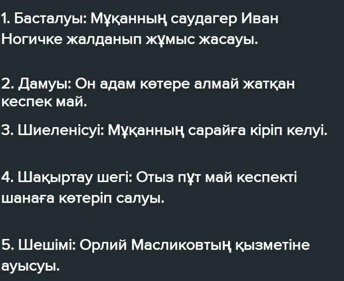 1. Басталуы: Мұқанның саудагер Иван Ногичке жалданып жұмыс жасауы.