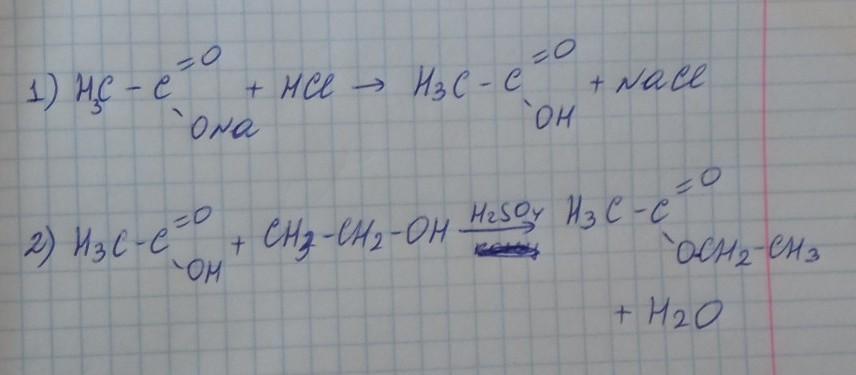 Натрия ацетат → уксусная кислота → этиловый эфир уксусной кислоты
