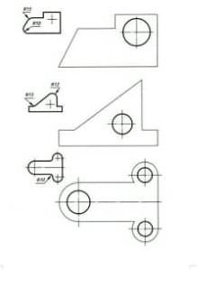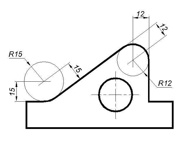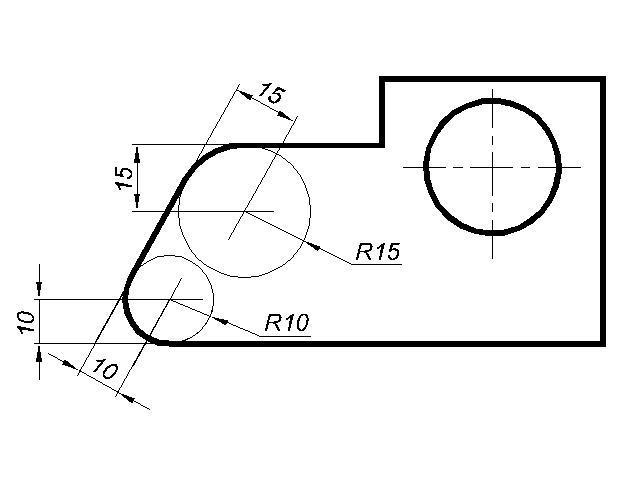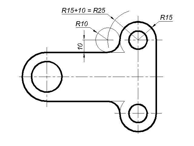 На чертежах справа отсутствует сопряжения. Постройте центры и точки сопряжения, выполните сопряжения по данным чертежах слева.