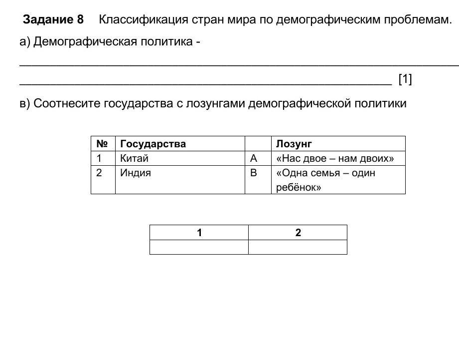 а) Демографическая политика - ________________________________________________________________________________________________________________________________________ [1]