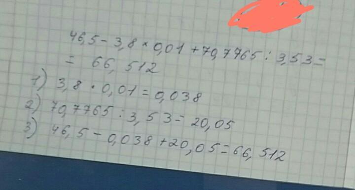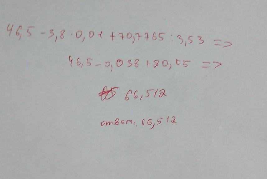 46,5 - 3,8 * 0,01 + 70,7765: 3,53