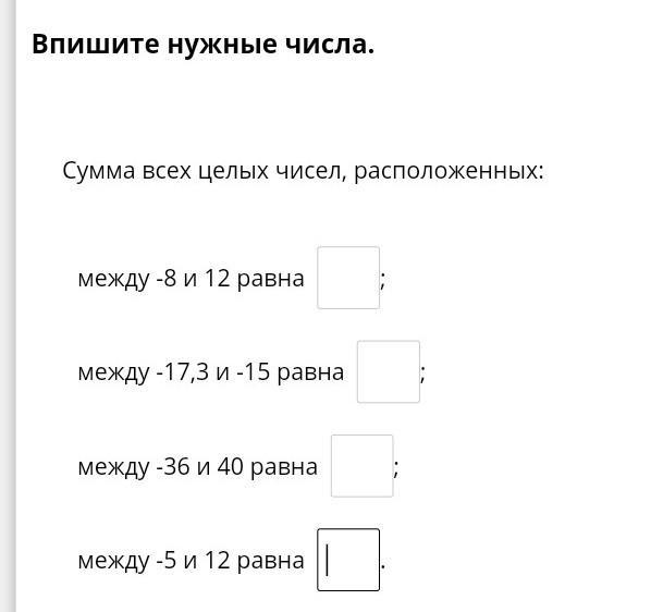1. -7+(-6)+(-5)+(-4)+(-3)+(-2)+(-1)+0+1+2+3+4+5+6+7+8+9+10+11=-7-6-5-4-3-2-1+1+2+3+4+5+6+7+8+9+10+11=8+9+10+11=38