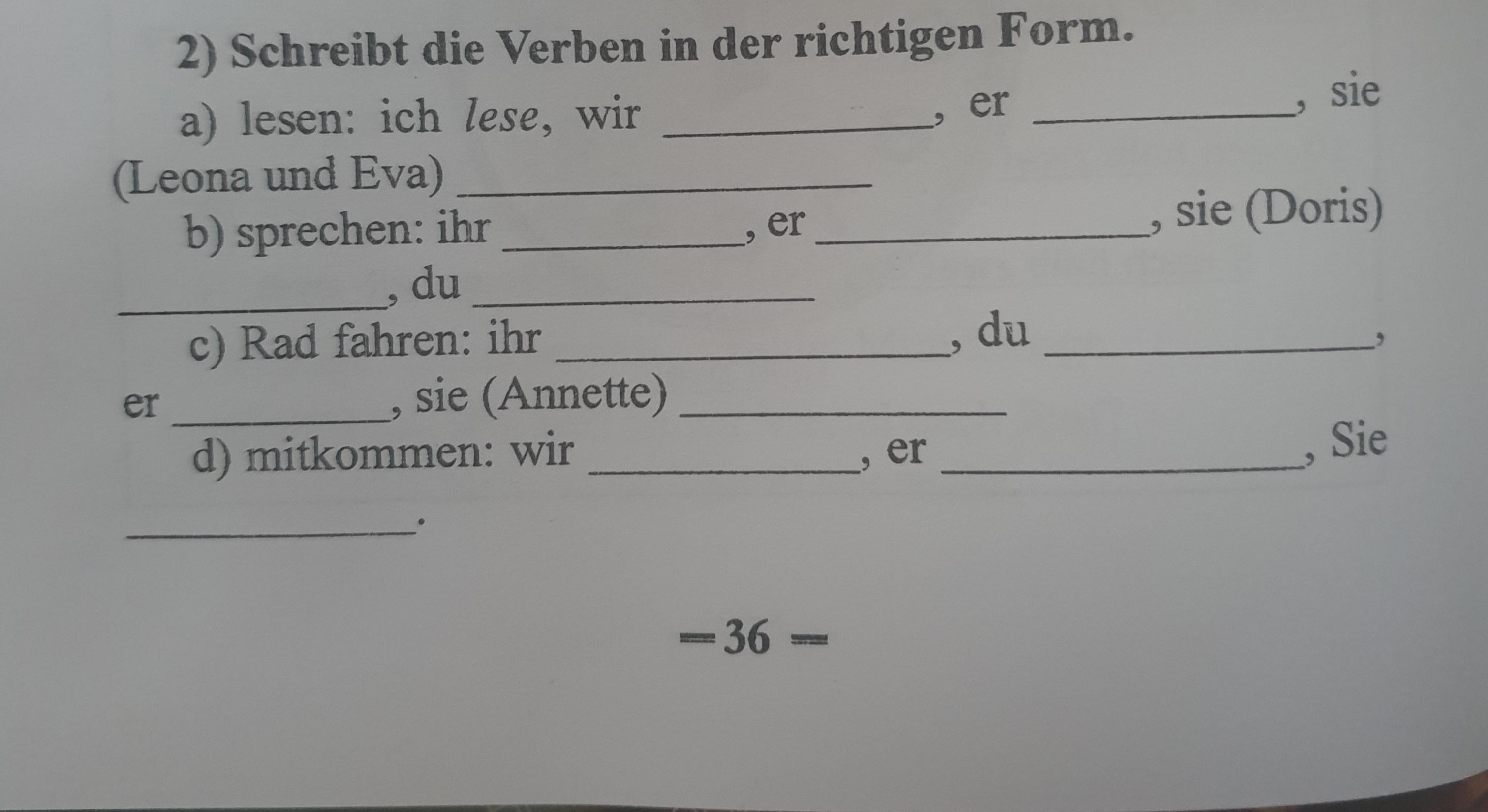 а) ich lese, wir lesen, er liest, sie (Leona und Eva) lesen