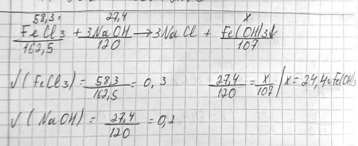 Смешали два раствора, содержащих соответственно 58,3 г хлорида железа и 27,4 г