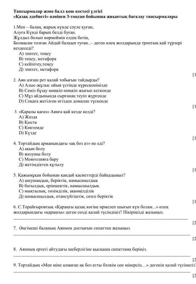 9 Тортайдың ойынша тек қана байлар ғана ақ боз атты атқаміне алады деп ойлаған Ол өзін кедей ақ боз атты отыра алмайтығына сенімді болды сол үшін солай айтты