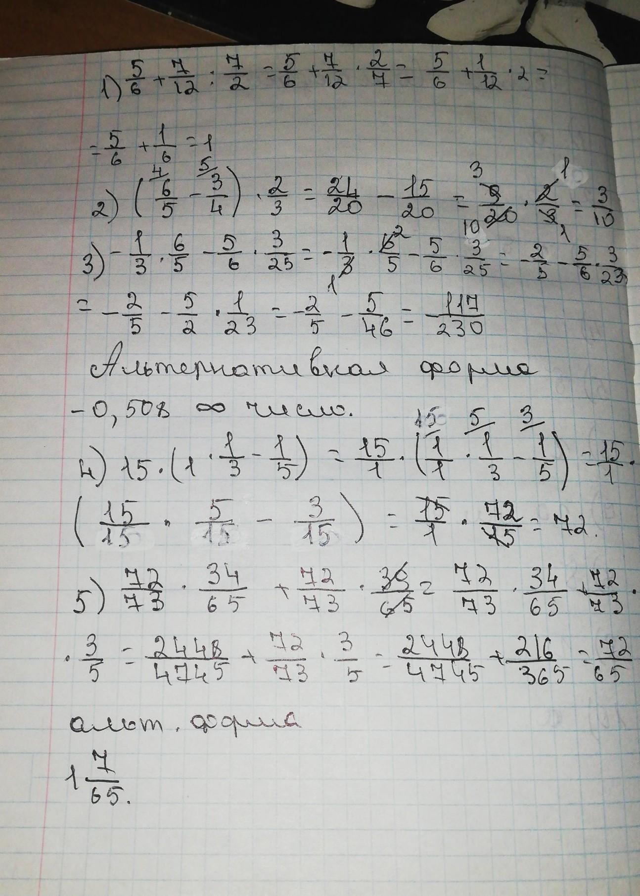 1)= 5/6+7/12×2/7=5/6+1/6×1/1=5/6+1/6=6/6=1