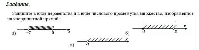 Запишите в виде неравенства и в виде числового промежутка множество, изображенное