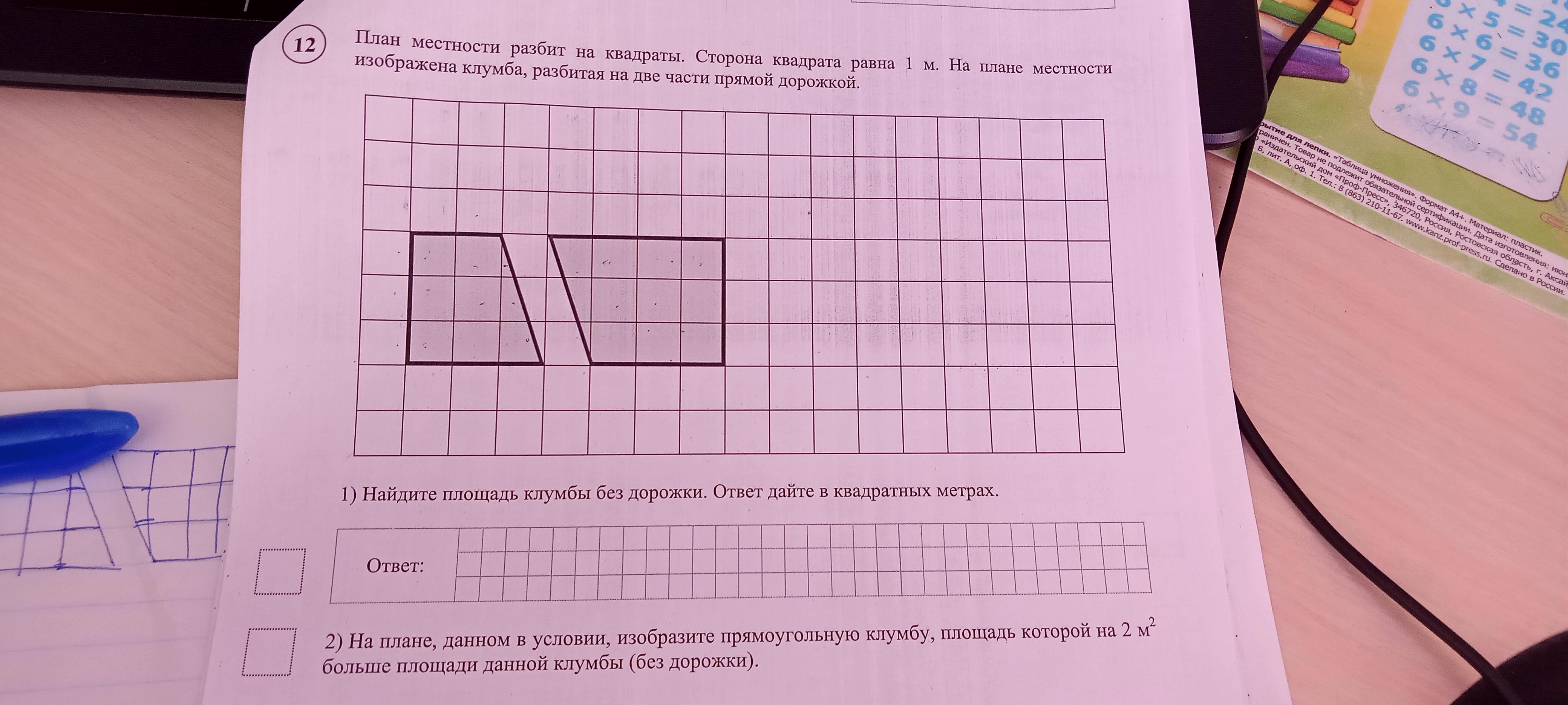 Длина : 5 метров; ширина 4м. (рисуем 5 клеток и 4клетки).