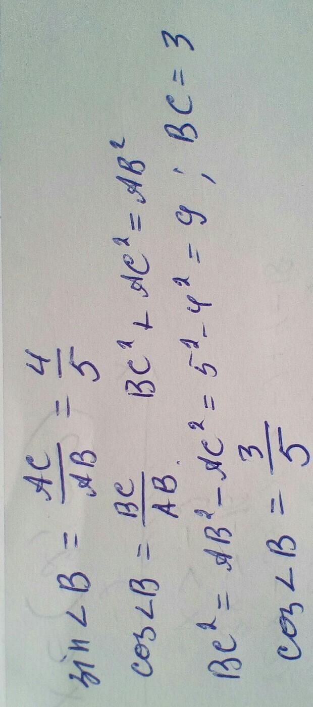 Ответ: cos угла В = 3/5