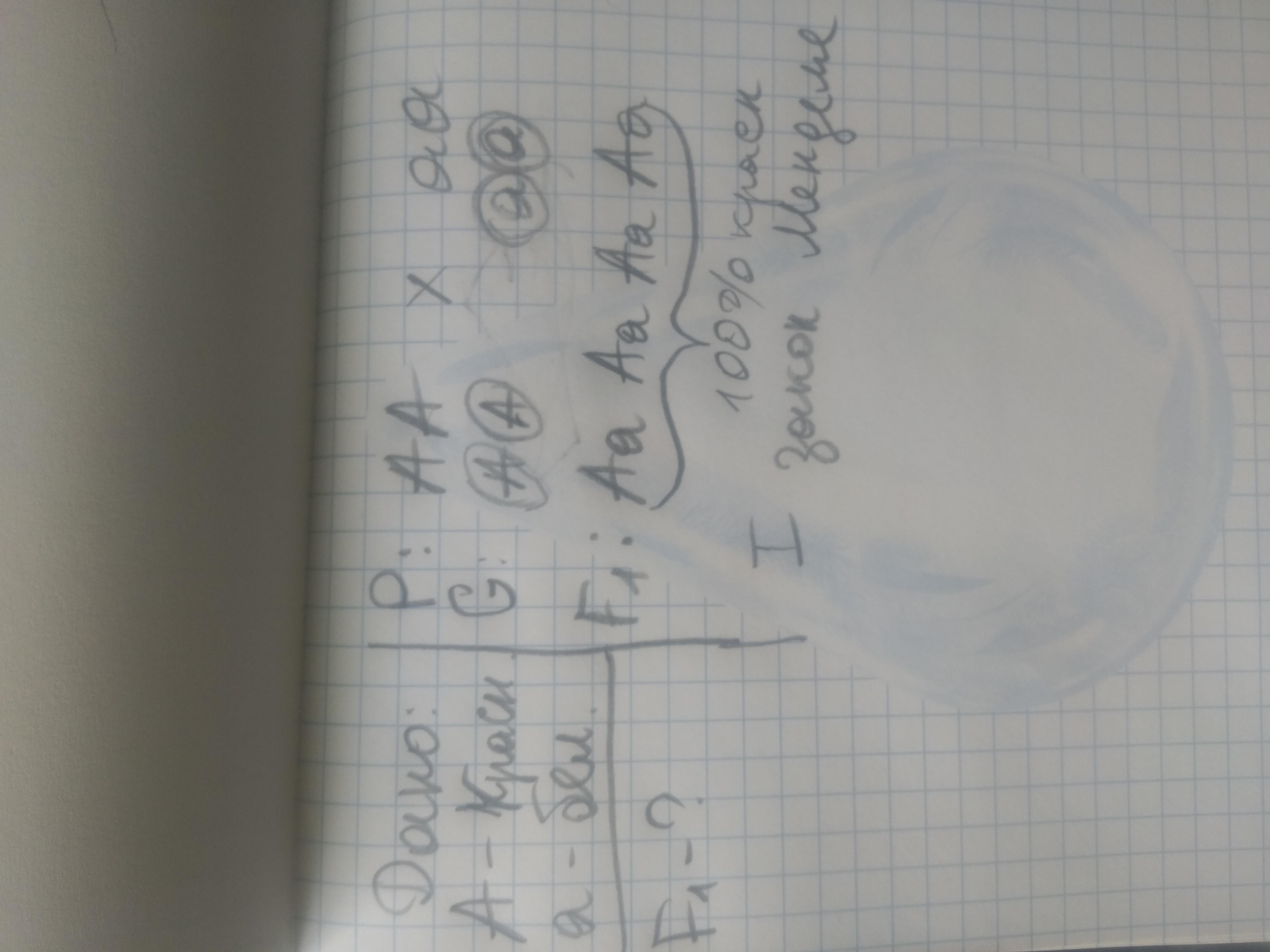 При скрещивании растений гороха (чистая линия) с красными (доминантный признак) и белыми цветами (рецесивныя признак) в первом поколении при полном доминировании