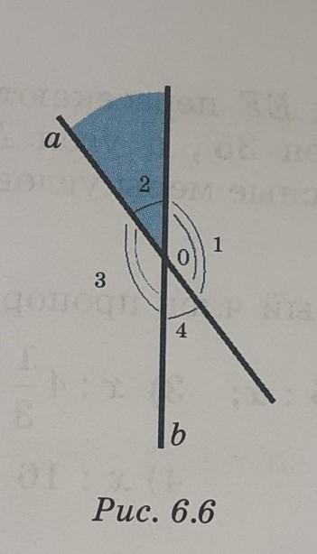 Прямые a и b пересикаются в точке O , угол 2 =40° . Найдите градумные меры угол 1,угол 2 и угол 4.(рис 6.6)
