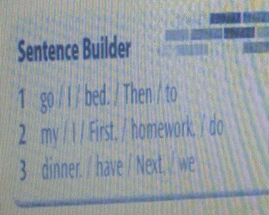 First, I do my homework. Next, we have dinner. Then I go to bed.